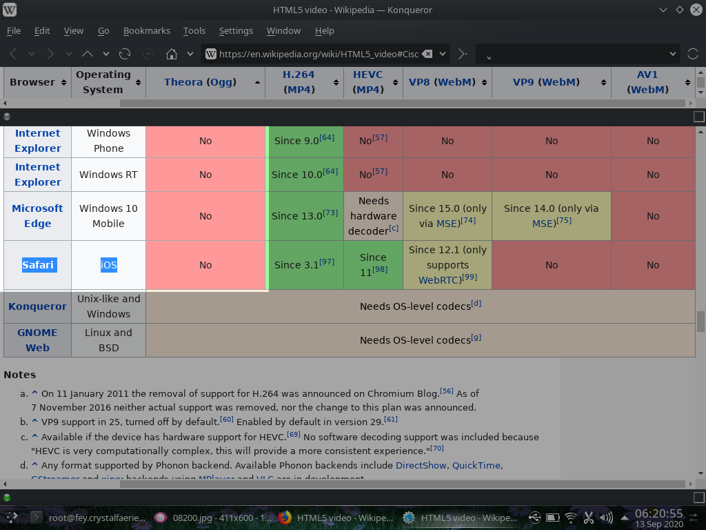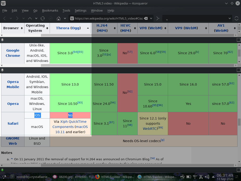 As for replacing Safari with Opera or Google Chrome, ummm... i've tried them all... and still, after all these years, it's Firefox i use all the time, but to do split screen views of a webpage in order to display just the portions of those above tables i wanted to focus upon, i summoned KDE's Konqueror, running on my KDE Plasma desktop, on DebIan "testing". VLC is what i use to view videos on my laptop :-)